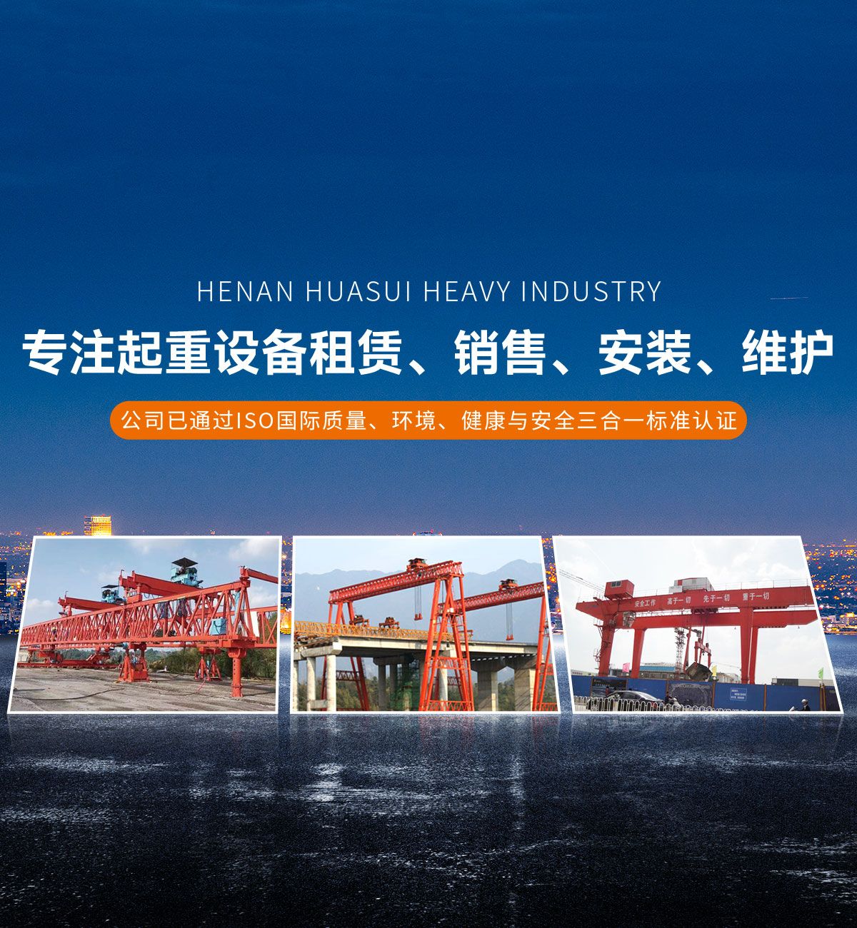 河南華隧重工機械裝備有限公司主要從事通用門式起重機、橋式起重機、電動單梁起重機,輪胎式起重機、架橋機、提梁機、遠梁平車、鋼絲繩電動萌蘆、卷揚機、起重配件制造、銷售:起重機械租賃、安裝和維修,起重設備園收,機械設備維修,鋼結構工程承包,橋梁工程及技術咨淘服務,銷售五金制品、機電設備:建設工程監理,建設工程設計,各類工程建設活動,建筑勞務分包,建筑物折除作業,施工作業,工程管理服務,土石方工程施工,裝如發運?! 」疽淹ㄟ^IS0國際質量、環境、健康與安全三合一標準認證,特種設備制造許可證和特種設備安裝改造維修許可證。擁有完熟的質量管理體系。嚴格的管理制度,強大的生產能力和先進的檢測手段,在保證產品質量的同時,也具備了極強的市場競爭力?! 」緢猿挚萍紕撔聻槔砟?,產品質量為核心,注重信譽,建立了減信可靠、快捷、思速。便利周到的售后服務網絡?! ∥覀儞碛械募夹g專家和技術服務隊伍為客戶提供充善的售前技術支持和全天候的售后服務體系,讓您無后顧之憂,享受一站式的超值服務。  “華隧重工,伴您成功“是華隧重工永遠的宗指,真被的希望與各界朋友攜手并進。共創輝準!